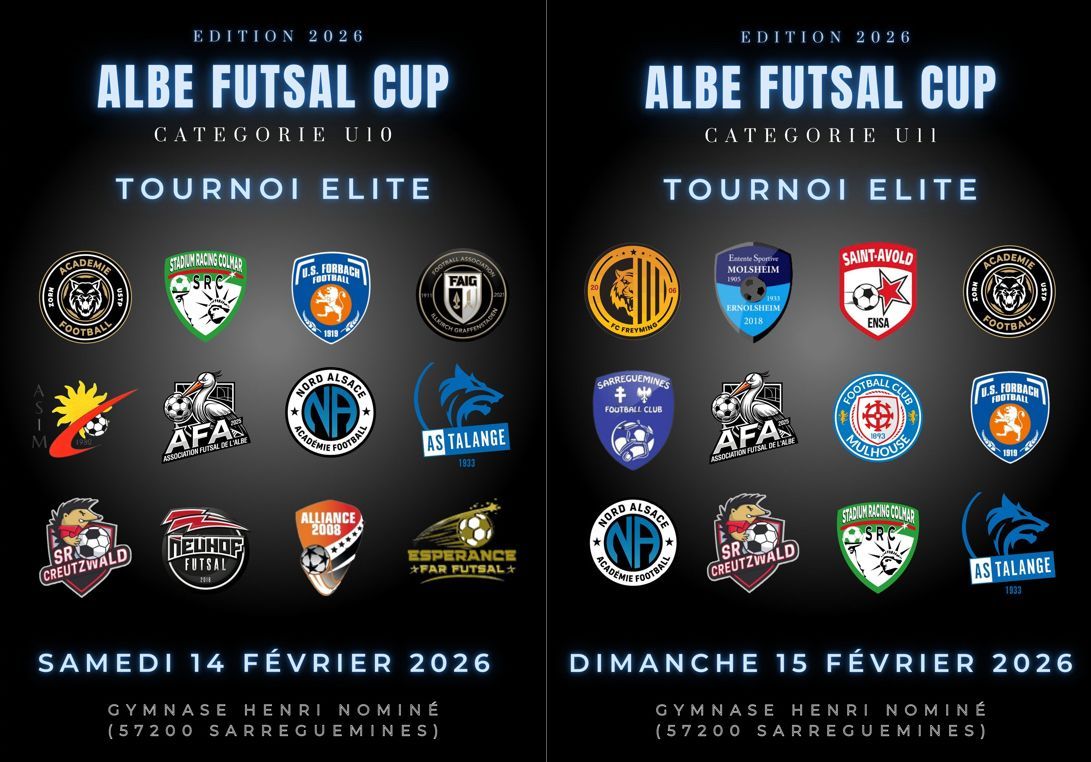 Après le succès de l’Albe Cup U11 organisée l’été dernier, les bénévoles du Futsal de l’Albe sont fiers de vous donner rendez-vous pour la première édition de l’Albe Futsal Cup U10 & U11, un événement entièrement dédié à la pratique du futsal.