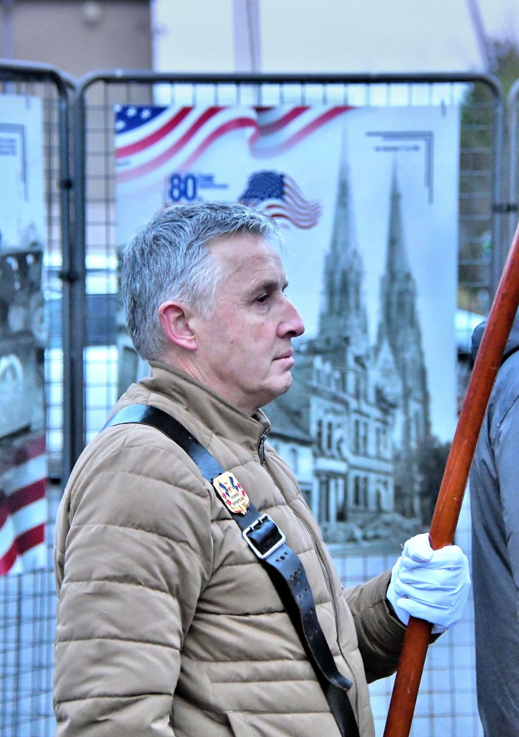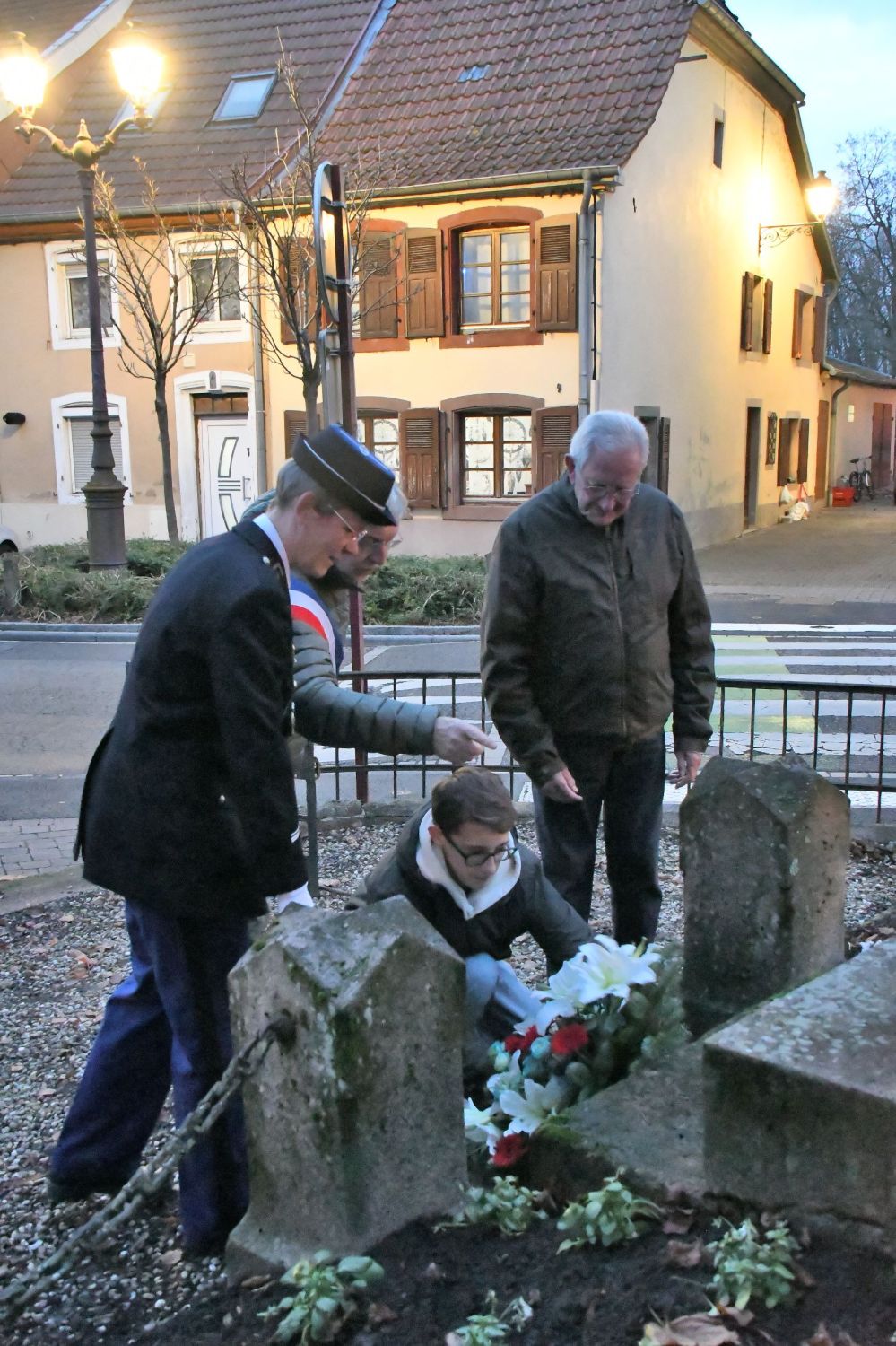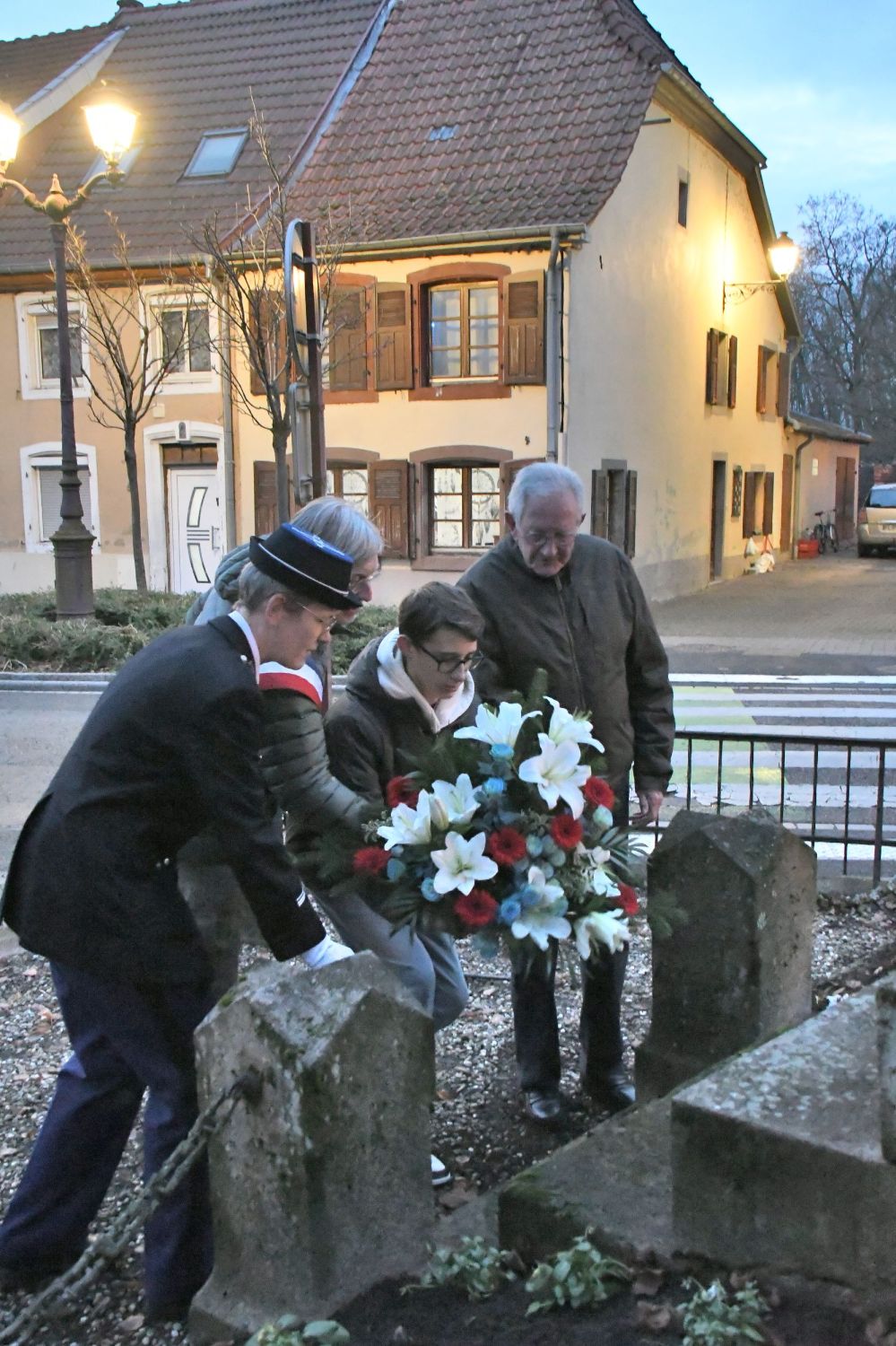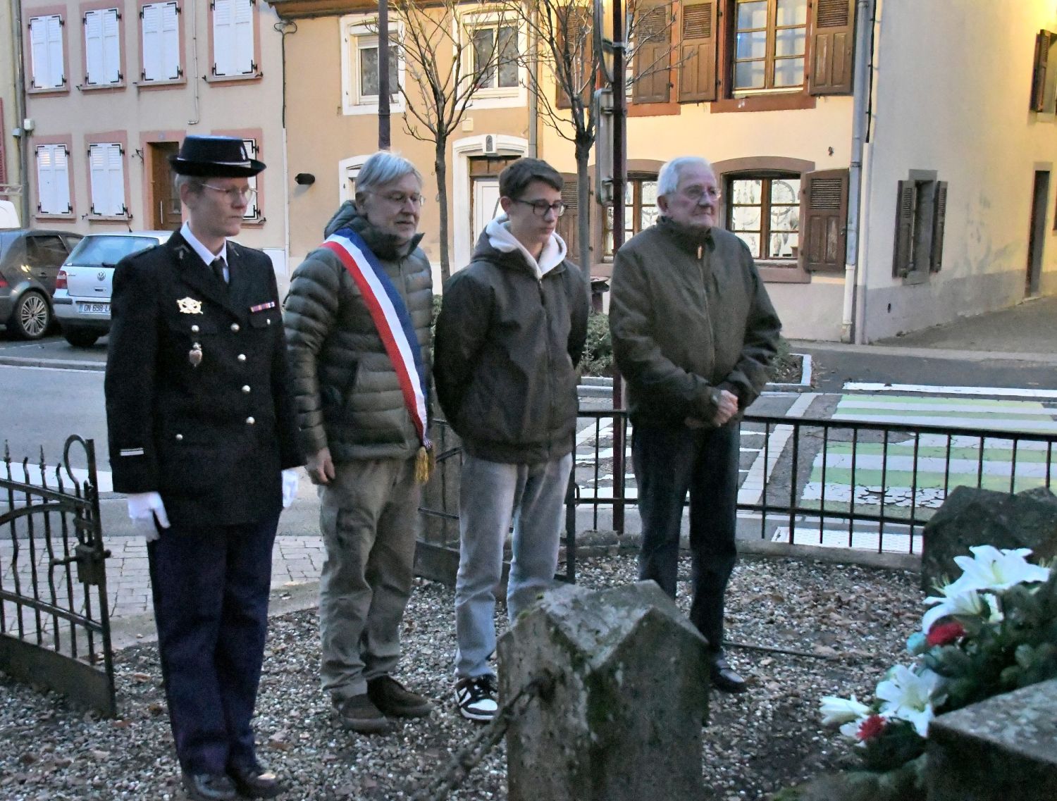 Deux commémorations ont eu lieu ce vendredi 5 décembre 2025 à 16h30. Les autorités civiles et militaires, accompagnées d’un porte-drapeau et des élus, se sont d’abord rassemblées autour de la stèle du square Patton pour honorer les jeunes soldats américains tombés pour la liberté et rappeler le 81ᵉ anniversaire de la libération de Sarralbe, survenue le 5 décembre 1944. Cette stèle, voulue par le regretté Paul Bodot, marque l’emplacement où les troupes américaines établirent leur liaison.