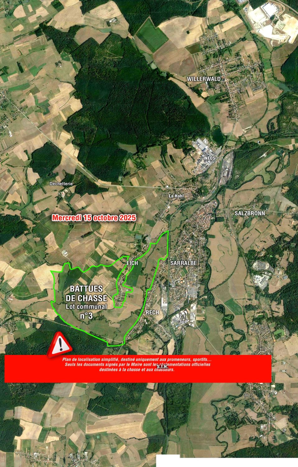 Sur le lot de chasse communale n° 3 délimité à l'ouest par le tronçon du ruisseau « Mutterbach » perpendiculaire à la limite du ban communal du VAL DE GUEBLANGE puis du chemin rural qui conduit à la rue des Noisetiers, au nord par le canal de la Sarre, à l'est par l'annexe de Rech et au sud par le ban communal du VAL DE GUEBLANGE et la RD entre Rech et le VAL DE GUEBLANGE. Il comprend la vallée de la Sarre entre Eich et Rech.