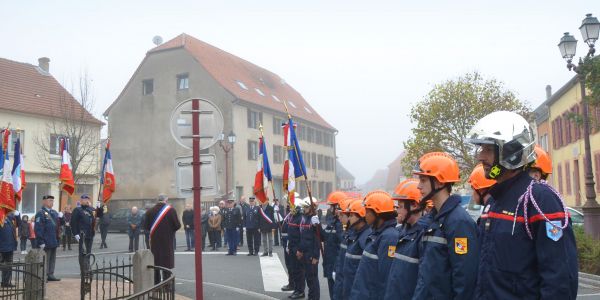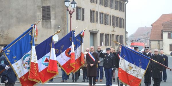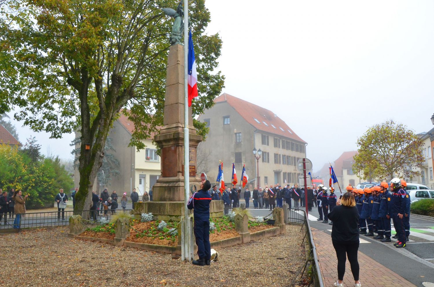 En présence des enfants de nos écoles, de la musique municipale, de nos sapeurs-pompiers, des portes-drapeaux, des élus, de Pierre-Jean Didiot Maire de la Ville de Sarralbe, Bernard Clavé Maire de Holving et des habitants des environs venus nombreux.