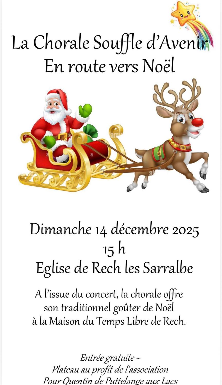 Agenda Concert de Noël de la Chorale Souffle d'Avenir Agenda Concert de Noël de la Chorale Souffle d'Avenir 14 déc. 2025 Eglise de Rech Concert de Noël de la Chorale Souffle d'Avenir le dimanche 14 décembre à 15 à Eglise de Rech Je partage