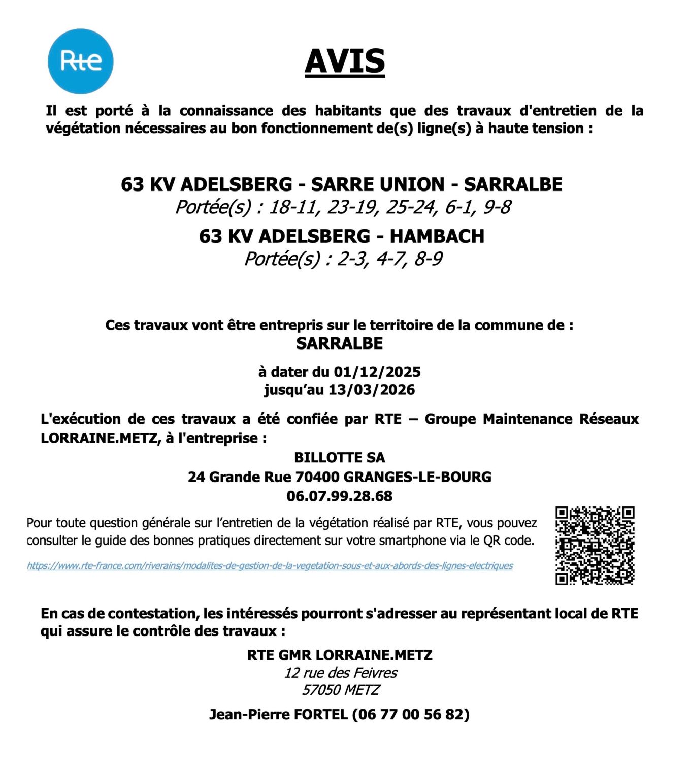 L'exécution de ces travaux a été confiée par RTE – Groupe Maintenance Réseaux LORRAINE.METZ, à l'entreprise :