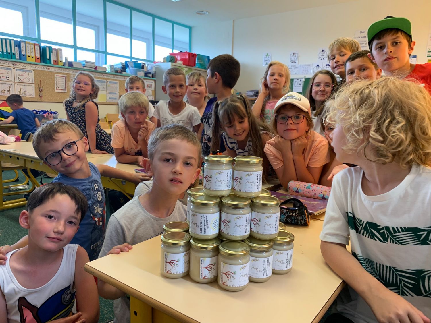 La remise des prix du concours “la plus belle étiquette de pots de miel” décorées par les enfants s’est déroulé dans la cour de l’école du Groupe Scolaire Schuman.