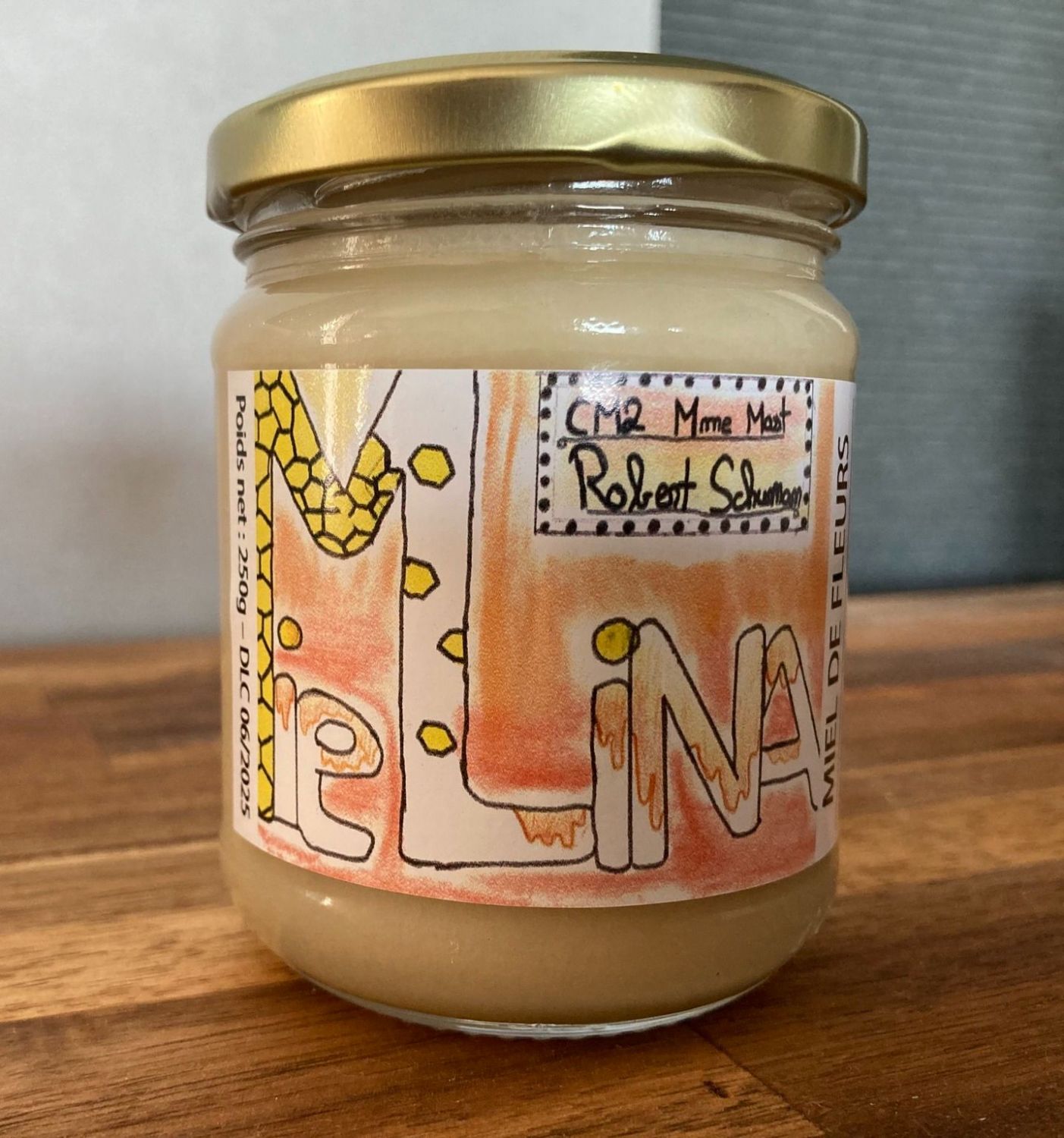 Chaque enfant s’est vu offrir le goûter et est reparti avec un pot de miel avec l’étiquette de sa classe. 400 pots de miel ont été offerts par le “Domaine du rucher” d’Erstroff.