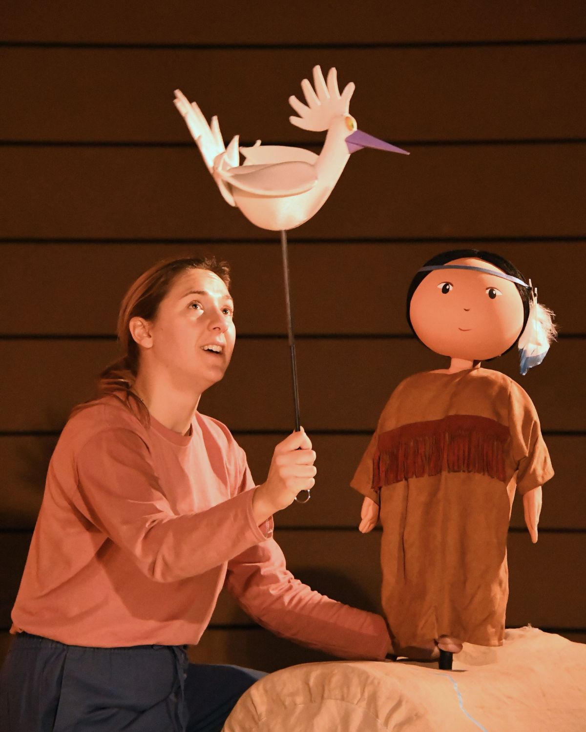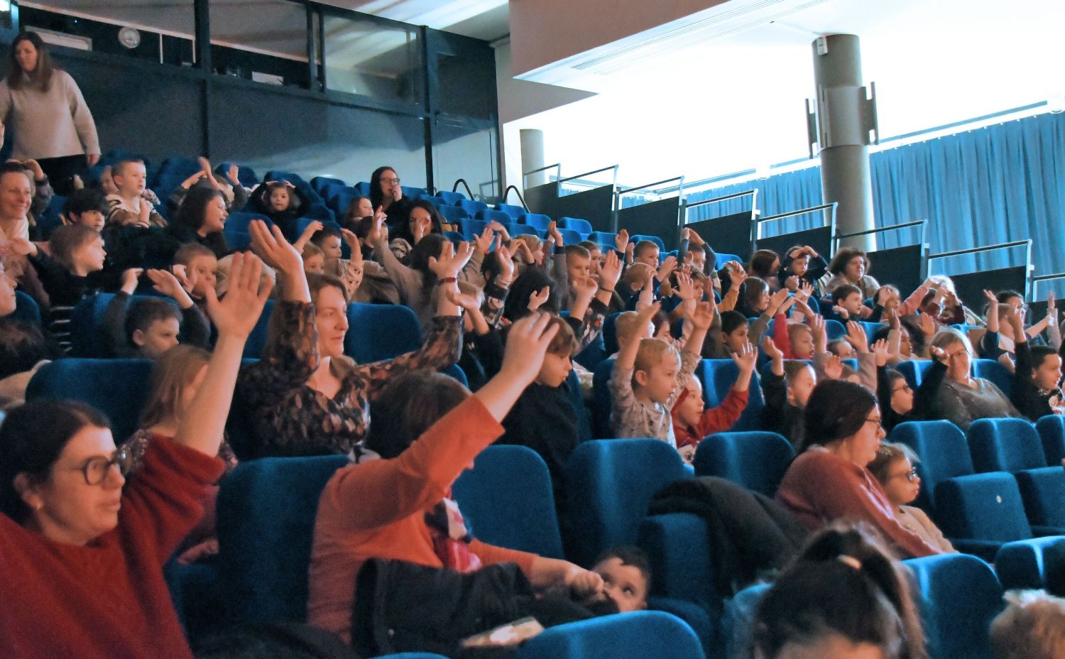 Tout au long de la représentation, les enfants ont été invités à participer activement : ils ont accompagné Soleil Rouge par des gestes et des incantations pour faire apparaître les personnages de ses souvenirs, et ont chanté aux côtés de la Petite Indienne.
