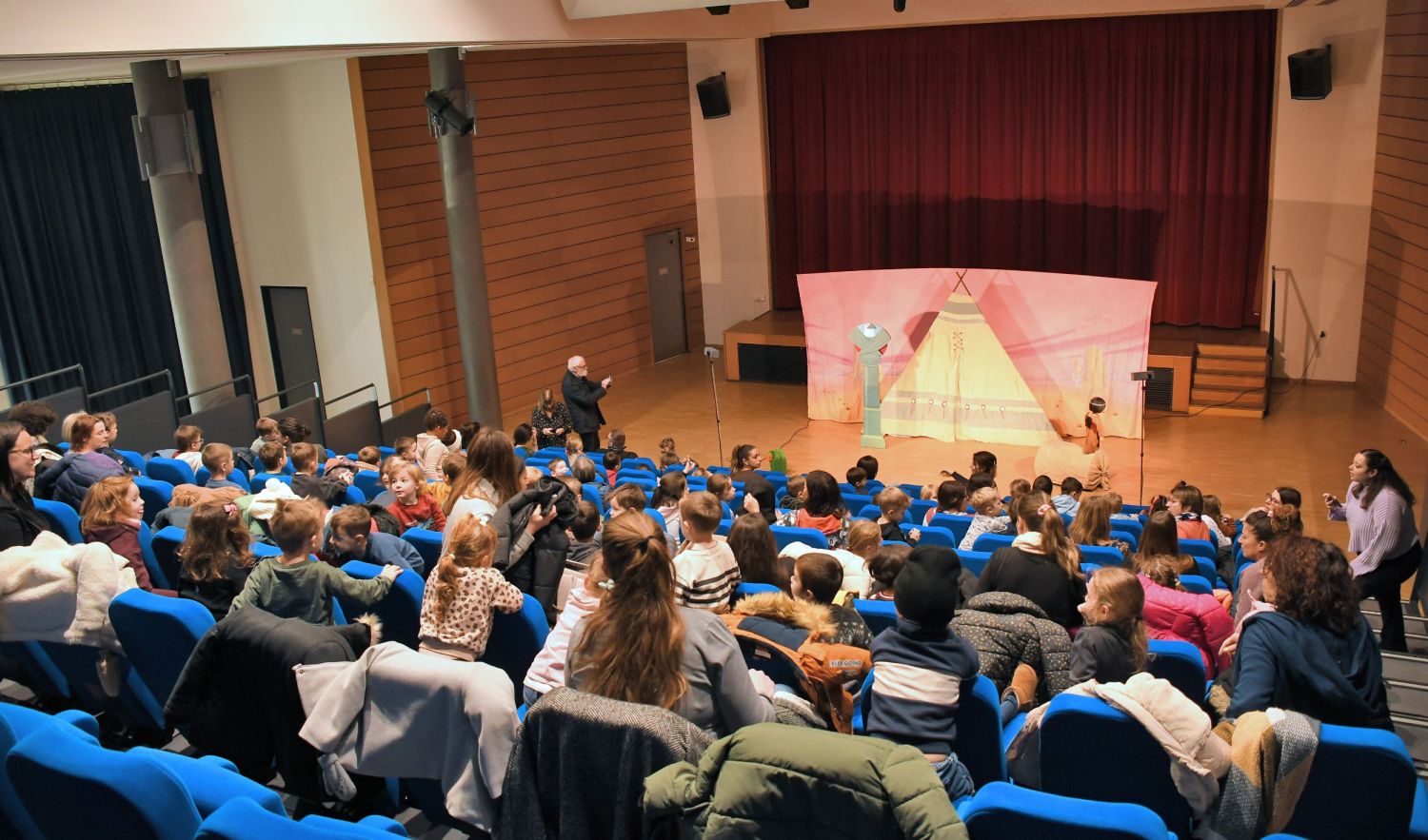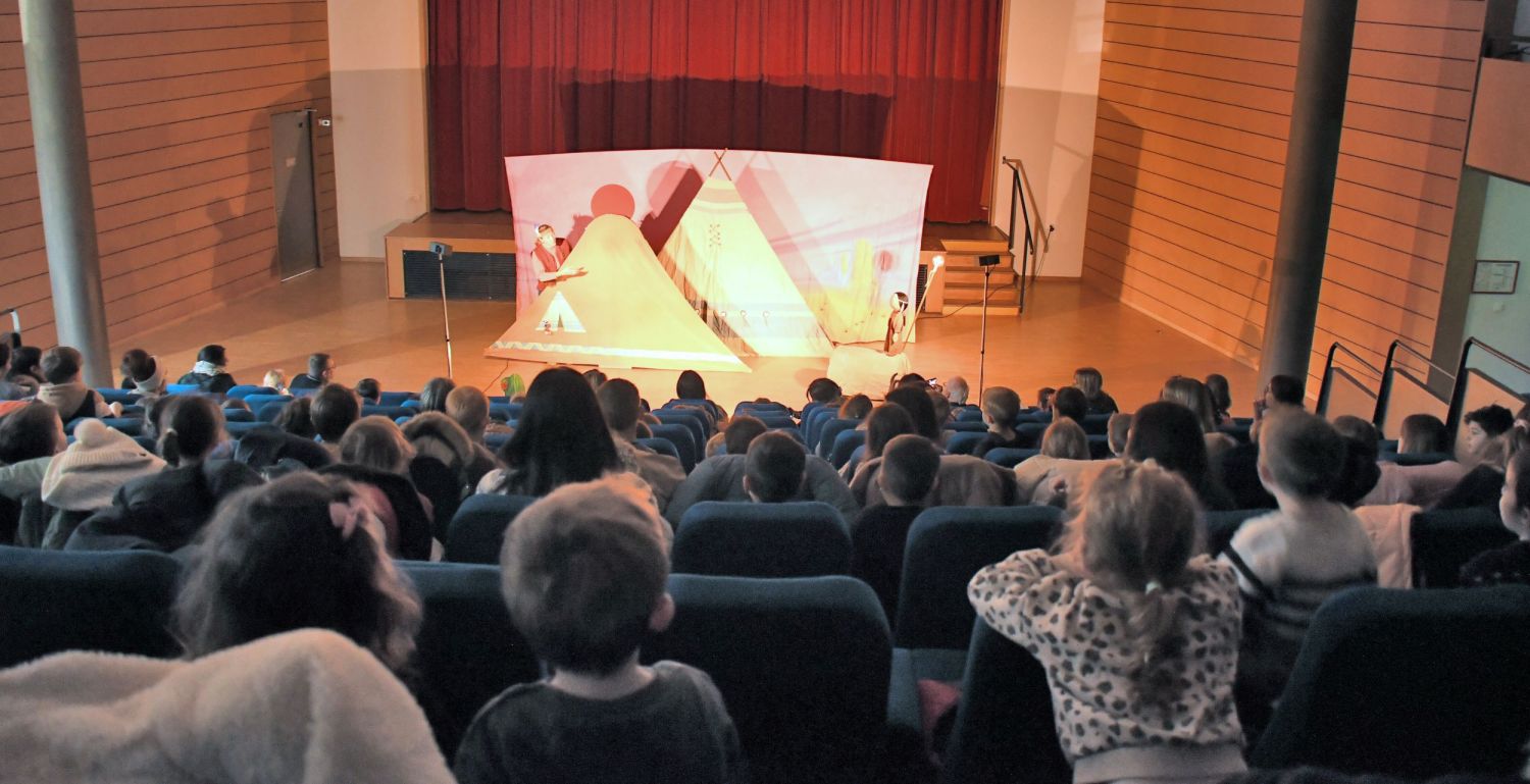 Ce spectacle s’est tenu dans la salle socio-culturelle du complexe, où les enfants et le corps enseignant ont eu le plaisir d’accueillir la Compagnie “Les 3 Chardons” venue présenter son spectacle jeune public Petite Indienne.