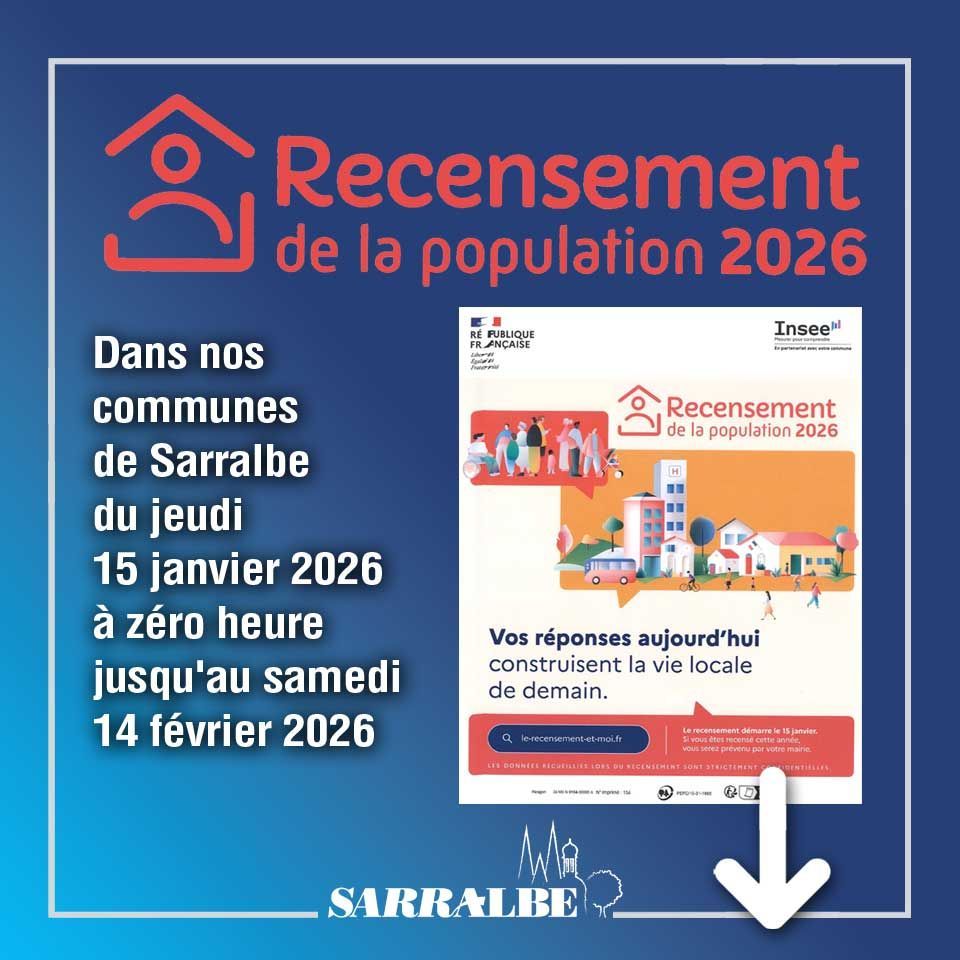 Le recensement de la population débutera le jeudi 15 janvier 2026 à zéro heure pour s'achever le samedi 14 février 2026.