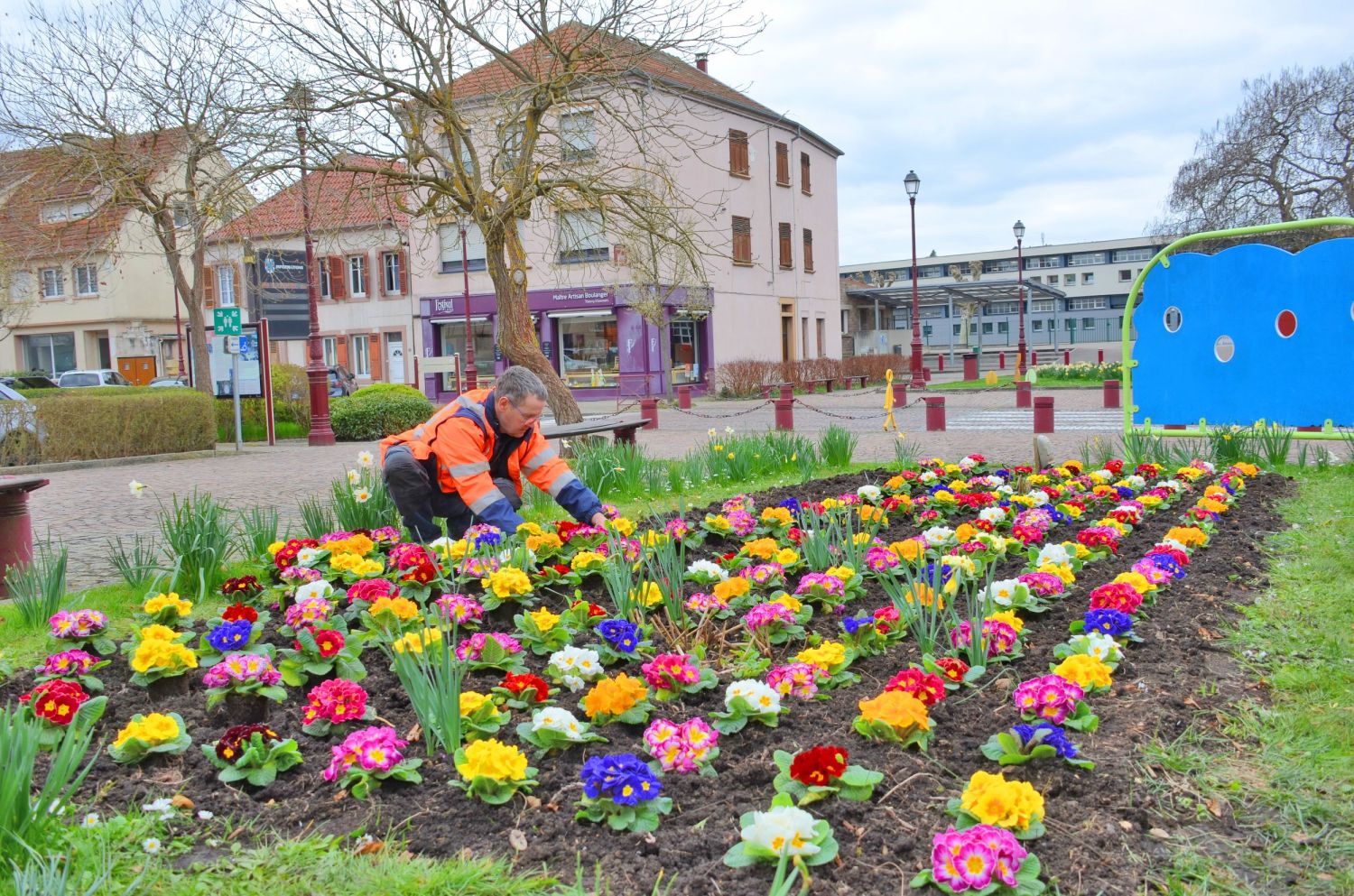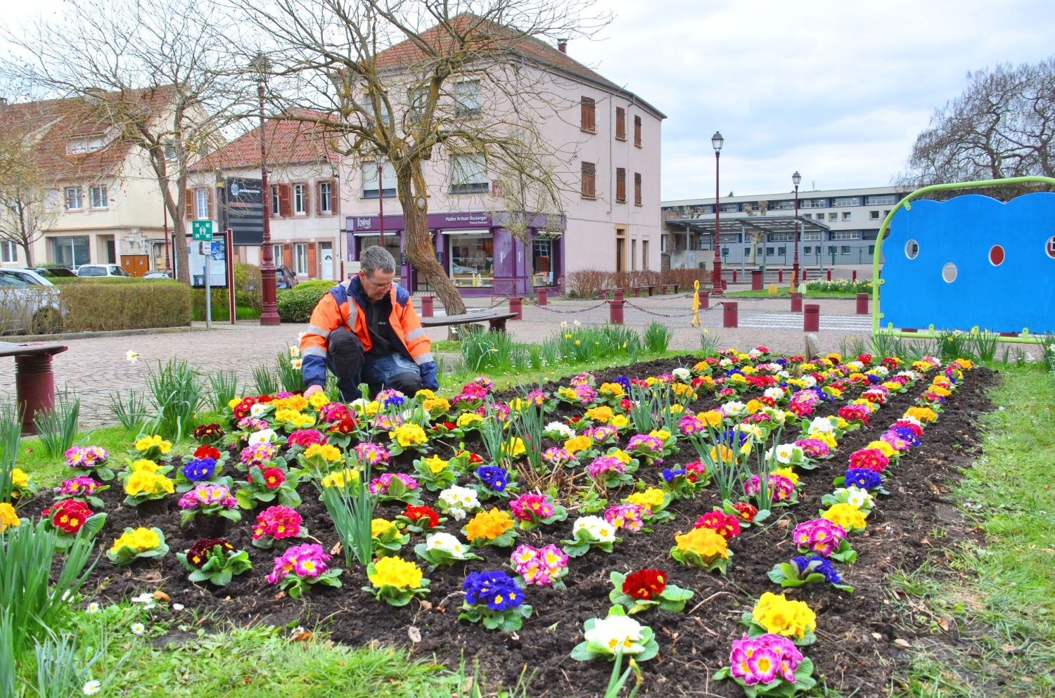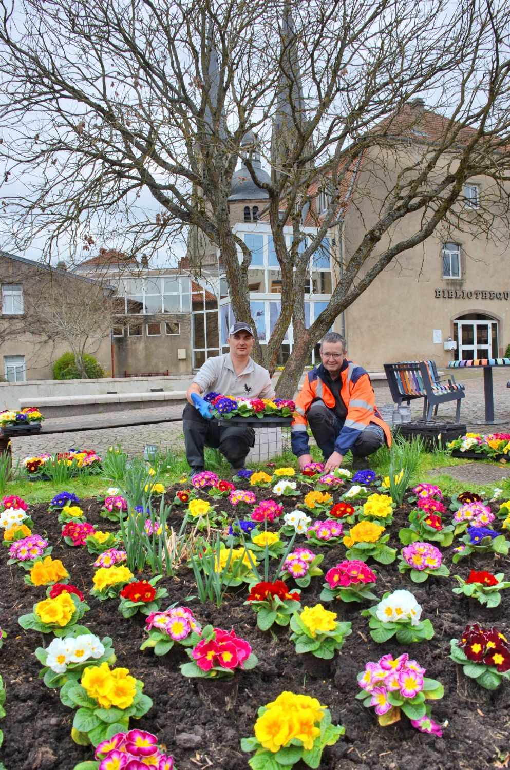 Sur la place de la République, sous un ciel encore hésitant, des mains unies ont planté bien plus que des fleurs. Avec le CCAS et les services des espaces verts, Raphaël et Fred ont donné vie à 320 primevères, petites lumières colorées venues adoucir le cœur de la ville.