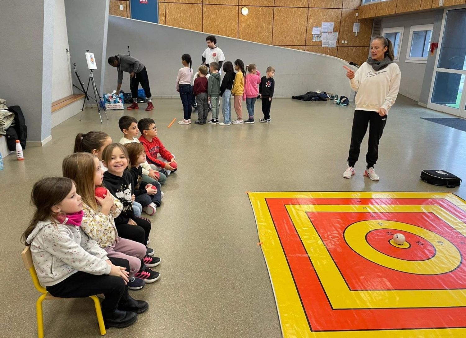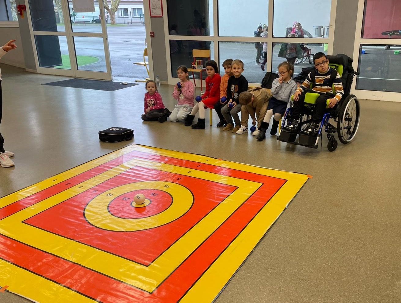 Une autre journée a été dédiée à la venue de l’IME de Saint-Avold, accompagné d’enfants en fauteuil roulant. Les élèves ont pu découvrir plusieurs sports adaptés, tels que la boccia et la sarbacane, disciplines pratiquées par des jeunes en situation de handicap moteur.