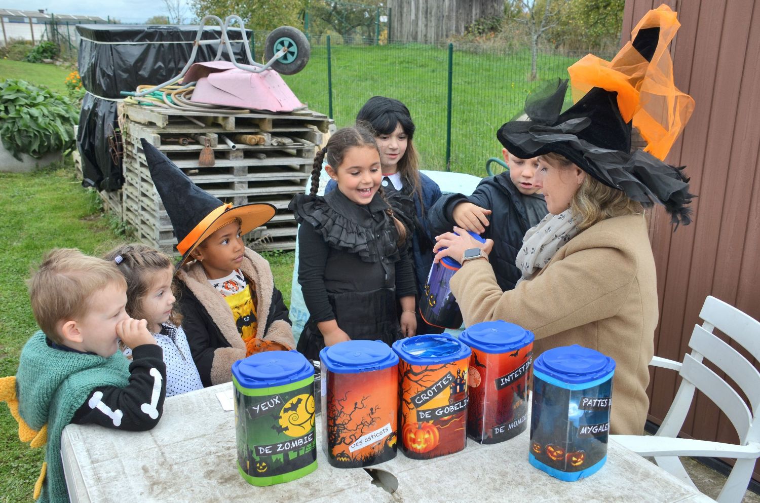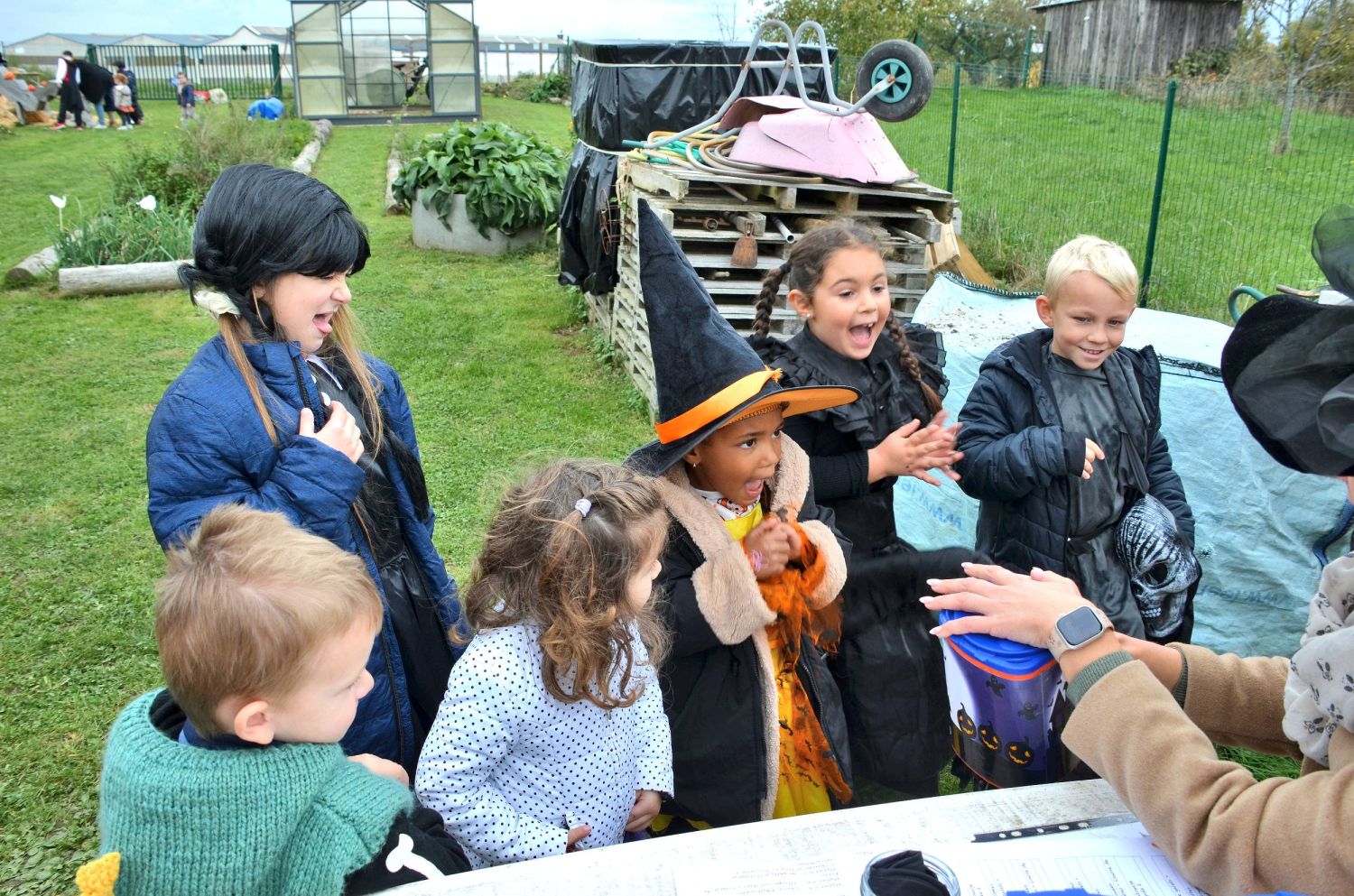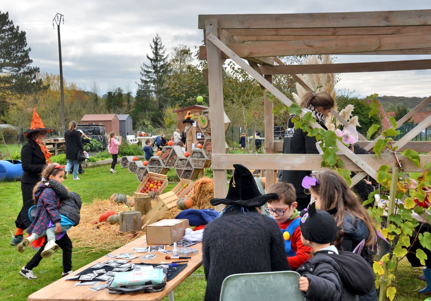 Les jardiniers de l’association avaient imaginé un décor féérique, entre citrouilles et potirons. Mais la surprise de la journée fut sans conteste le sort jeté à Jojo le jardinier par les enfants : transformé en squelette, il est resté tout l’après-midi assis dans sa brouette, sous les éclats de rire des petits sorciers en herbe !