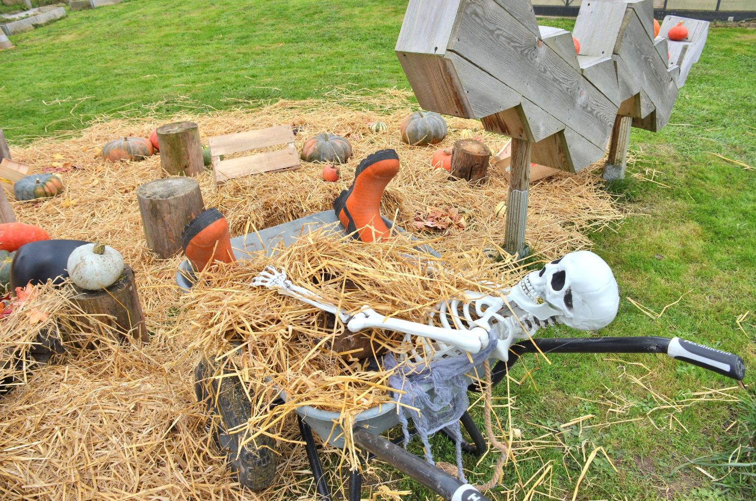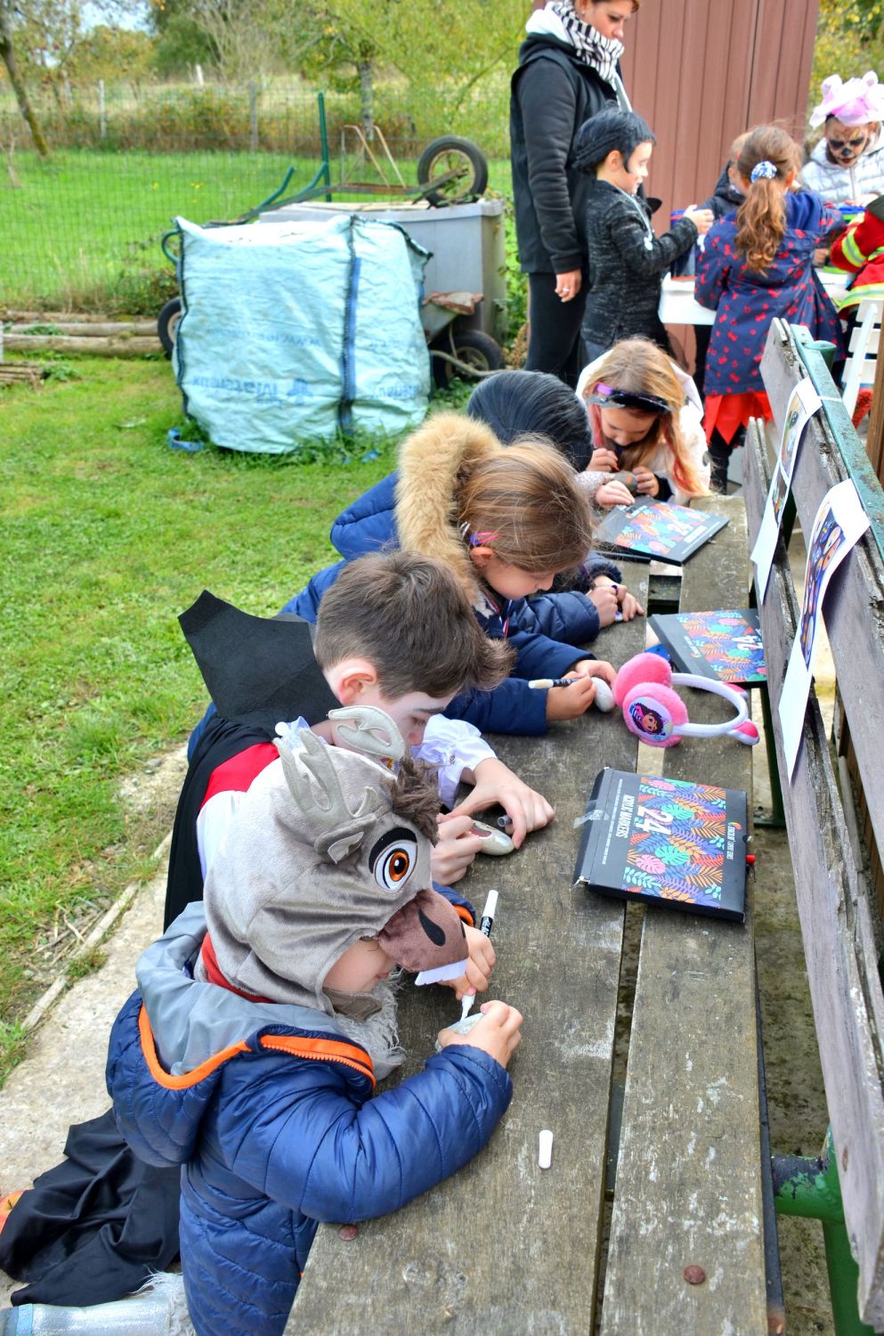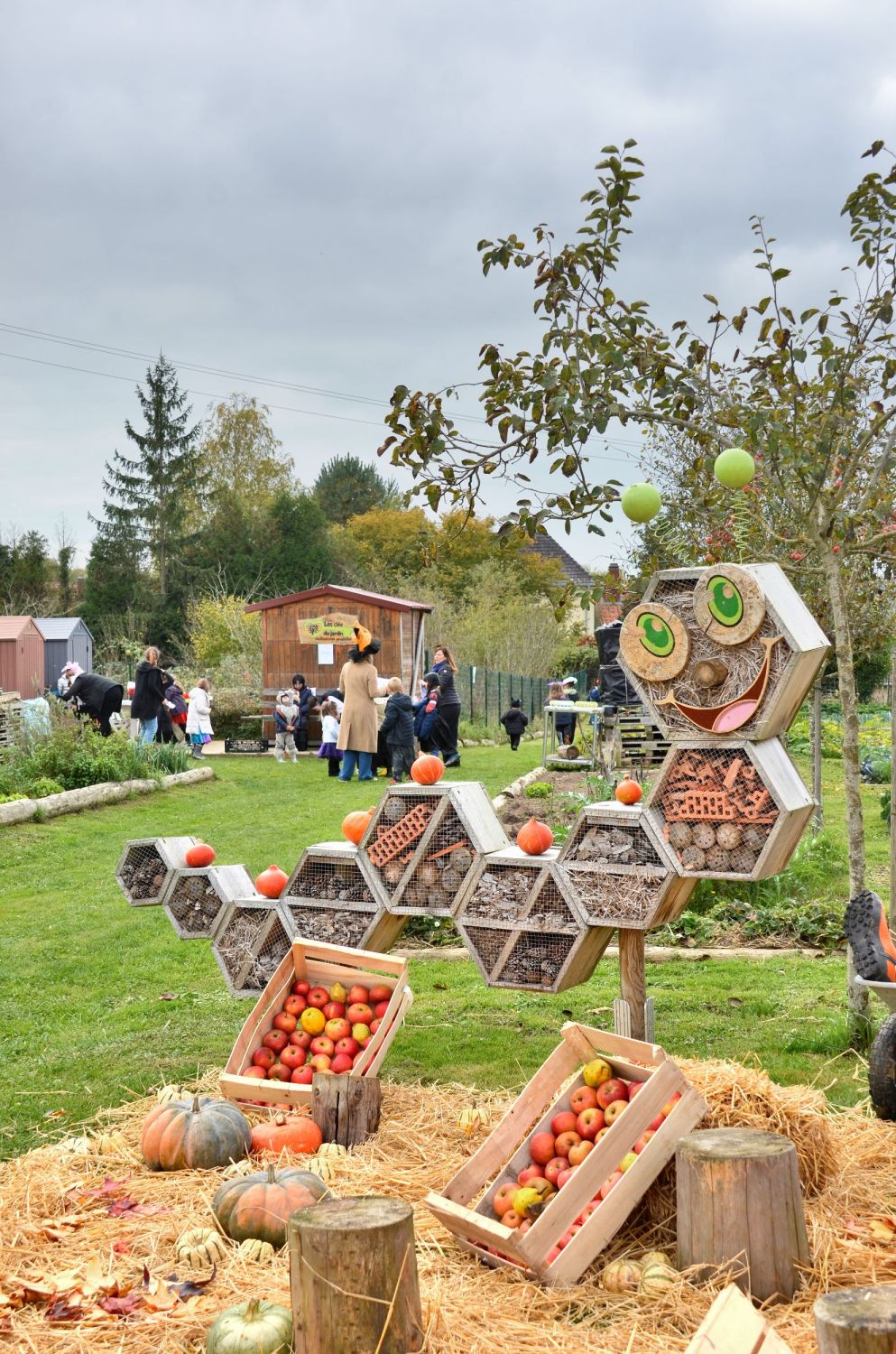 Les jardiniers de l’association avaient imaginé un décor féérique, entre citrouilles et potirons. Mais la surprise de la journée fut sans conteste le sort jeté à Jojo le jardinier par les enfants : transformé en squelette, il est resté tout l’après-midi assis dans sa brouette, sous les éclats de rire des petits sorciers en herbe !